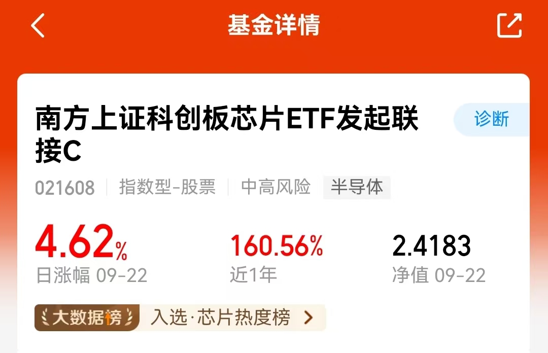 看$南方上证科创板芯片ETF发起联接A$(021607)这个指数昨天4.61%的涨幅够带劲吧?三个月57%,一年160%的业绩摆在这,实力说话!现在市场资金明显在往科创芯片方向流动,这个指数正好卡在风口上。指数基金最省心,不用纠结选哪个,整个赛道一起上。行情火热的时候就得跟紧,犹豫就会败北。看看这走势,明显有资金在持续流入,现在位置还算合适,跟上节奏才能吃到肉!